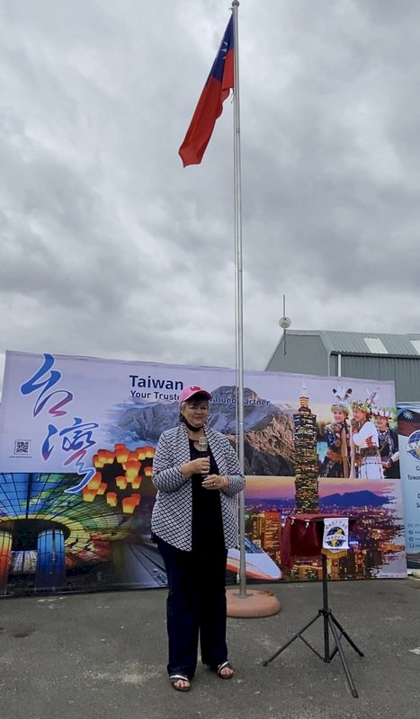 南非開普敦台灣商會3日舉辦慶祝中華民國110年國慶升旗典禮,南非國會議員威爾森受邀出席致詞。(駐南非開普敦辦事處提供)(圖:中央社)