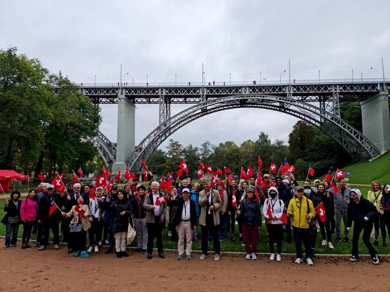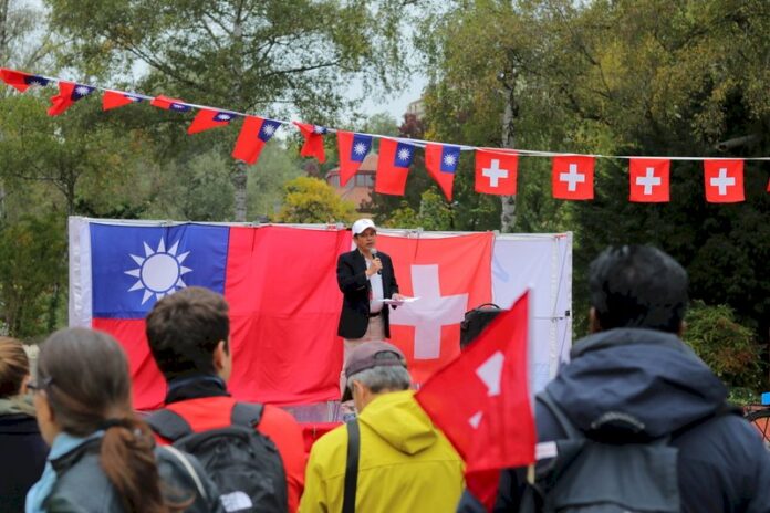 全球外館近期紛紛舉辦雙十國慶活動,駐瑞士代表處在防疫規定下別出心裁8日以舉辦戶外運動會方式慶祝,現場插滿台灣國旗,駐瑞士代表黃偉峰呼籲民主國家與台灣合作促進和平。