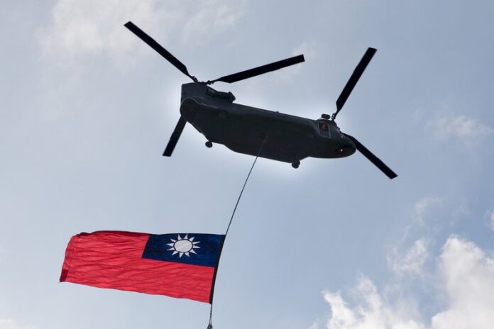 中華民国110年の建国記念日「双十国慶節」は、CH-47輸送ヘリが過去最大サイズの巨大な国旗を吊るし、軍の12機種47機と共に総統府の上空を通過するほか、陸軍が新たに購入した地対空ミサイル「陸射剣二」が披露されるなど規模を拡大して行われる。(写真:2020年の国慶節の模様/RTI)