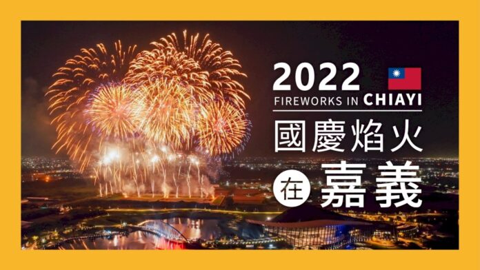 2022國慶焰火在嘉義縣舉行,當晚8時將施放2.6萬顆高空焰火配合水舞表演。(慶籌會提供)