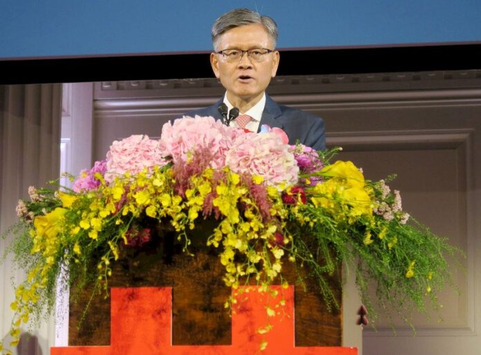 駐紐約辦事處6日舉辦國慶酒會,處長李光章致詞。 (圖:中央社)