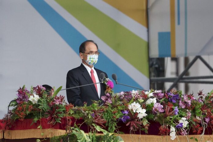 유시쿤 입법원장이 10일 쌍십절 국경일 경축행사에서 연설하고 있다. [사진= CNA DB]