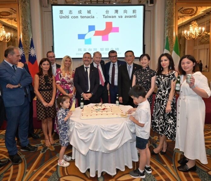 駐義大利代表處慶祝中華民國112年國慶,4日晚間在羅馬威斯汀酒店舉辦國慶酒會,義大利國會參眾議員、政府官員、智庫學者、友邦及各友好國家駐義使節及僑胞等,共約200人歡聚祝賀國慶。