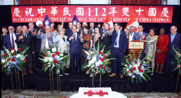 在祥獅獻瑞鼓聲和電音三太子熱鬧表演的氣氛中,為駐加拿大代表處的國慶酒會拉開序幕。加拿大國會議員在酒會中讚揚台灣站在對抗中國霸權的最前線,他們並允諾將一讀通過的「加台關係架構法」,繼續推動二、三讀。